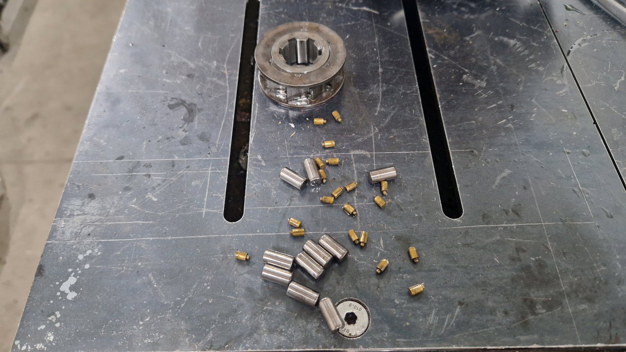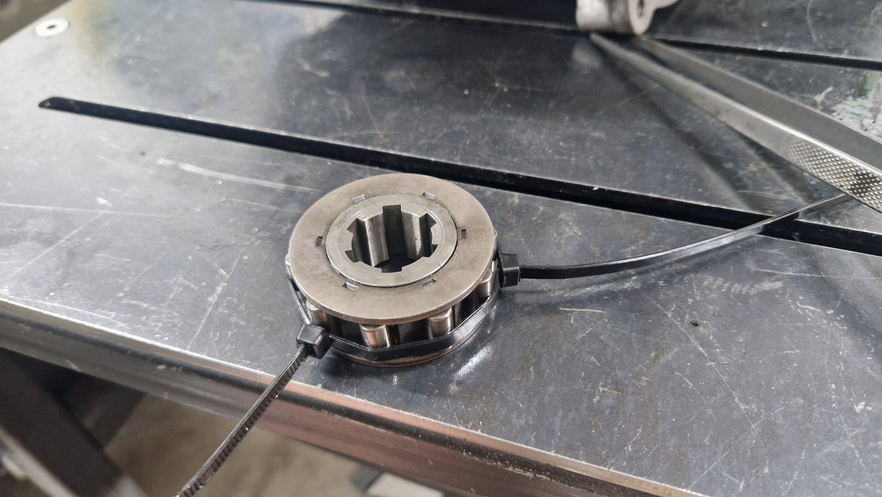 Przypomnę - tak wyglądało sprzęgiełko wolnego koła po wyjęciu. Trzeba to wszystko upchnąć z powrotem... Co prawda chyba każdy z V4 zapina mechanizm na stałe na ostre koło, co pomija ten mechanizm zupełnie, no ale jednak - jak jest, to niech działa :).