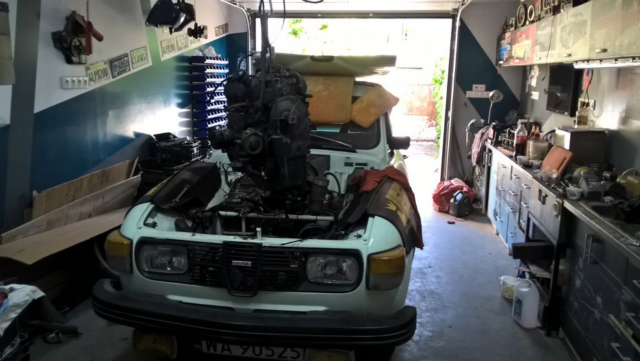 Niedługo potem miałem silnik już porozpinany, wyjętą chłodnicę itp.