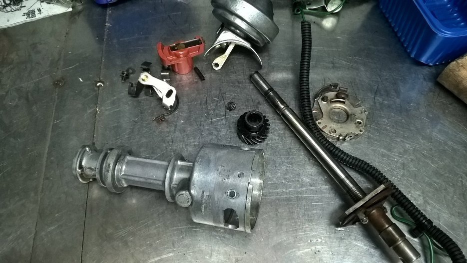 Ciężarki opóźnienia zapłonu oraz mechanizm przyśpieszenia zapłonu podciśnieniem stawiały dość spory opór, więc podejrzewam, że nie działało to zbyt dobrze. Po wyczyszczeniu wygląda to wszystko o wiele lepiej, ale też i zaczęło się ruszać. To, co trzeba nasmarowałem i złożyłem w całość.