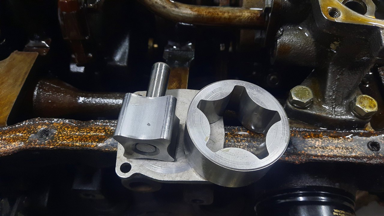 Rozkręciłem pompę oleju. Rzeczywiście jest nowa. Ma jakieś wgniecenie na jednej z płaszczyzn, ale na nic to nie wpływa.