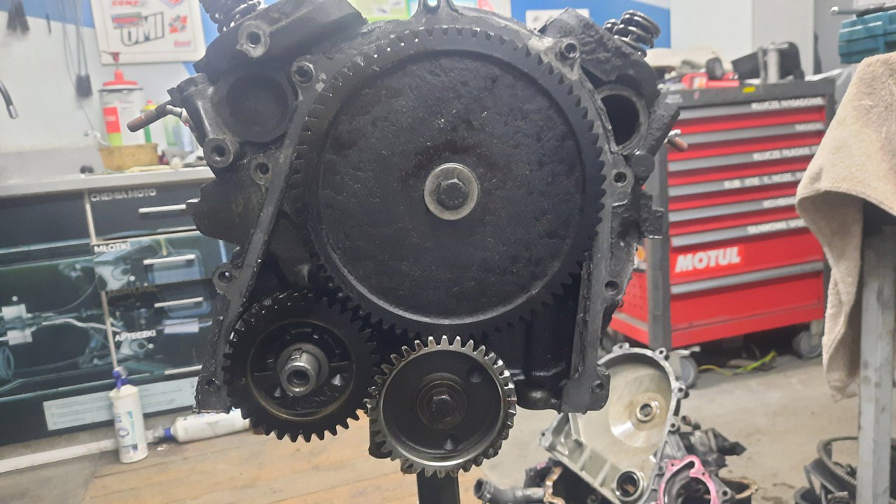W zasadzie można by złożyć to teraz z powrotem i może nawet byłoby ok, ale właściciel stwierdził, widząc moją nieufność do reszty silnika, że robimy całość, jak najmniej się da, ale jak trzeba, bo nie wiadomo co czyha dalej. No to rozkręcam silnik... Może najpierw aparat zapłonowy?