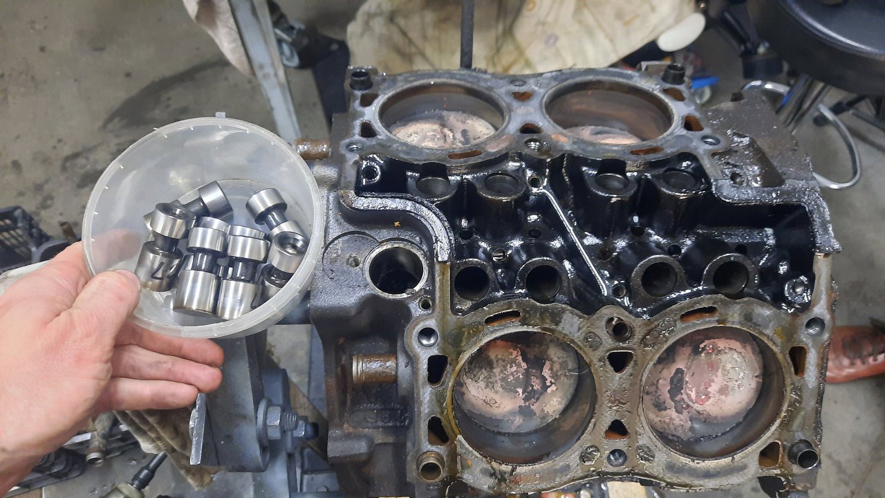 Zdjąłem głowice, wyciągnąłem i ponumerowałem popychacze zaworowe. Dzięki temu trafią na swoje miejsce.
