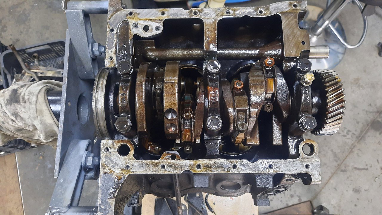 Odkręciłem panewki i wyjąłem wał korbowy.