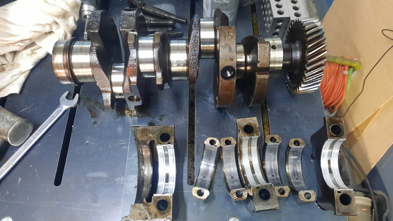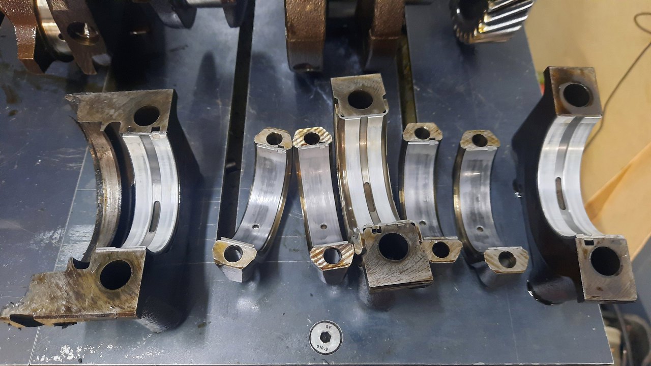Panewki główne są idealne, ale korbowe ciut wytarte. Prawdopodobnie te za niskie ciśnienie oleju je wykończyło.