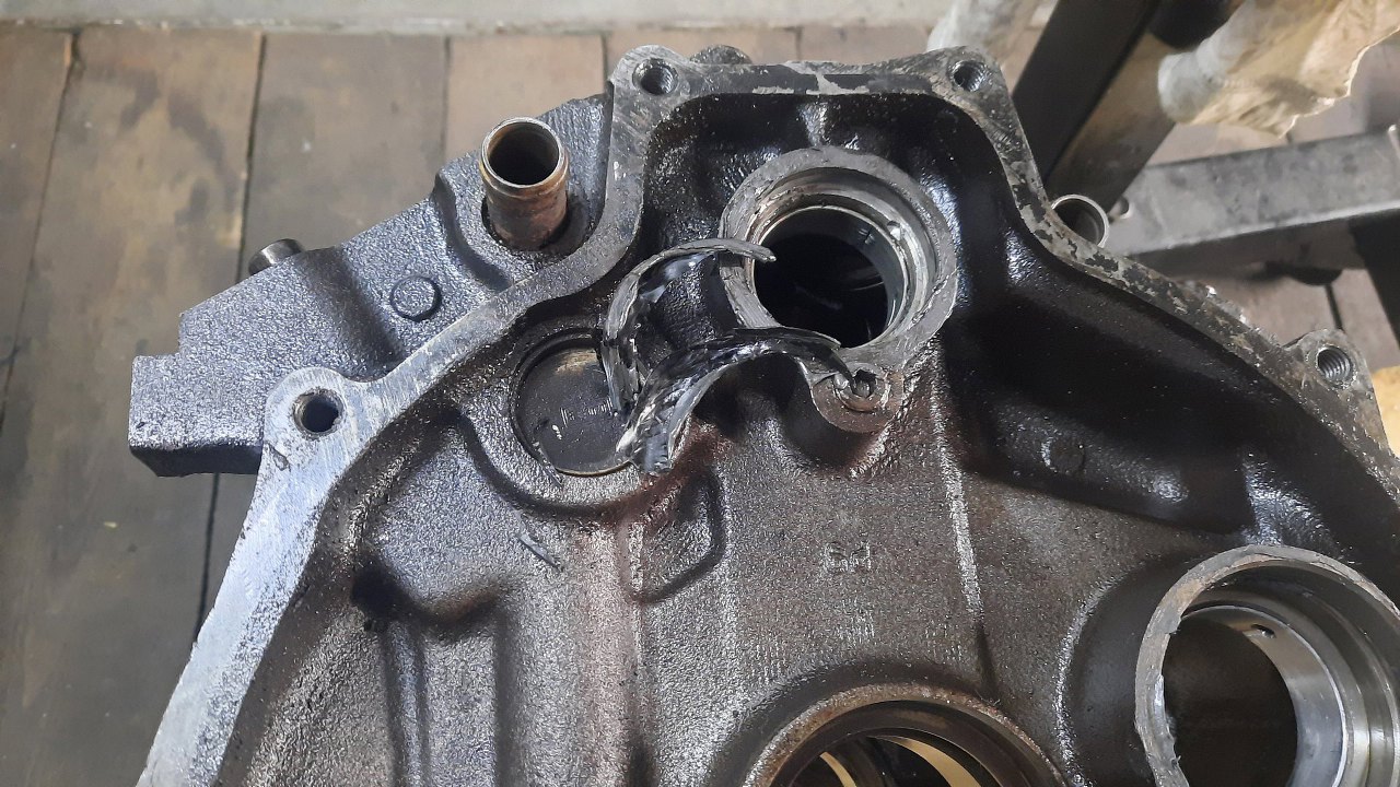W sumie nie dziwię się, że cały silnik jest zalany olejem... Nawet tu, zaślepka wałka rozrządu nie była wbita na miejsce, a zaledwie włożona, i trzymała się tylko na silikonie. Do tego się jeszcze ruszała. A jak ją wyjąłem znalazłem... Taśmę izolacyjną.