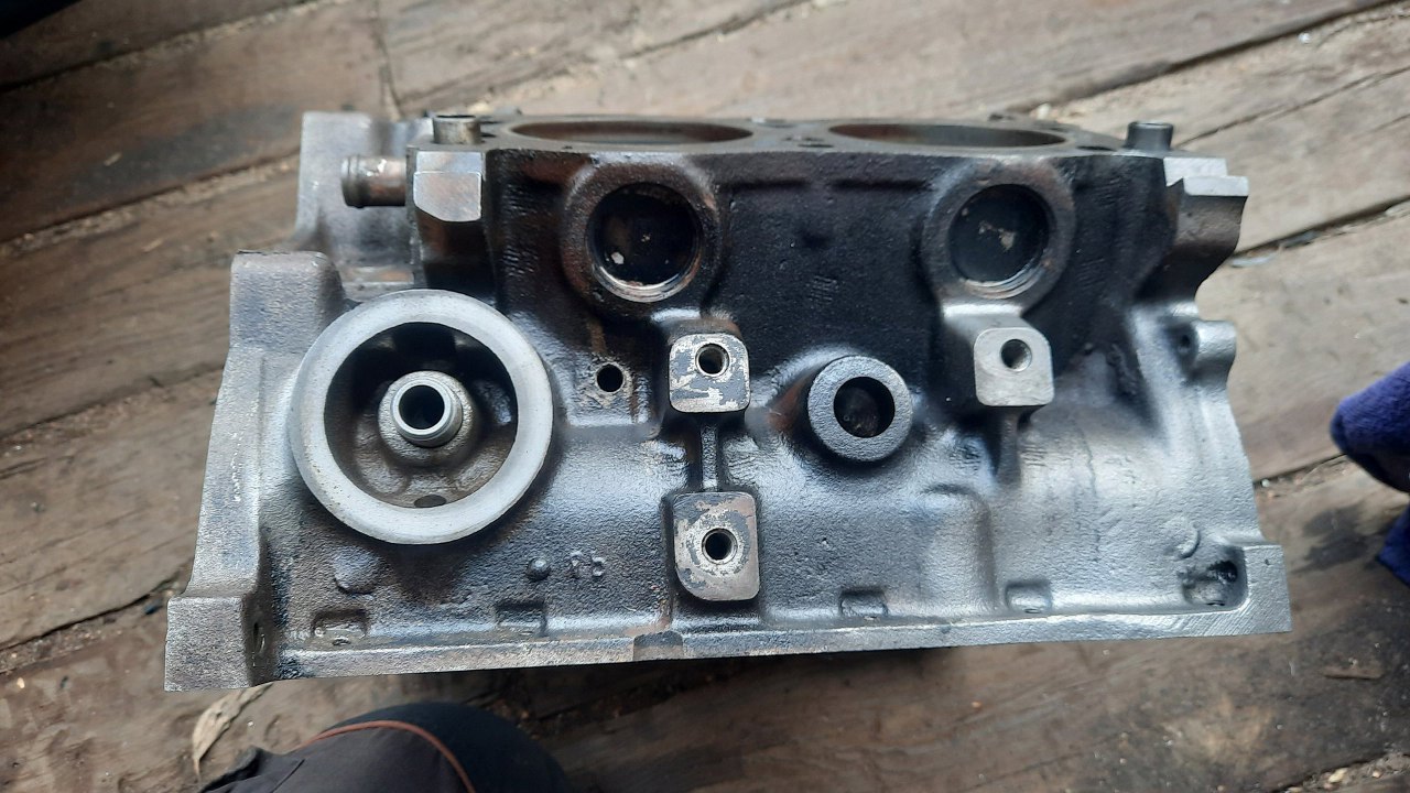 Sam blok chciałem najpierw oczyścić z rdzy, ale się nie dało - był tak zapaprany olejem. Dlatego najpierw porządnie go domyłem. Tak wygląda świeżo po myciu. Widać ile silikonu było użyte, swoją drogą nie tam, gdzie trzeba :).