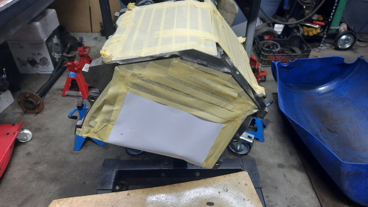 Potem silnik powędrował na stojak, a ja okleiłem go do malowania.