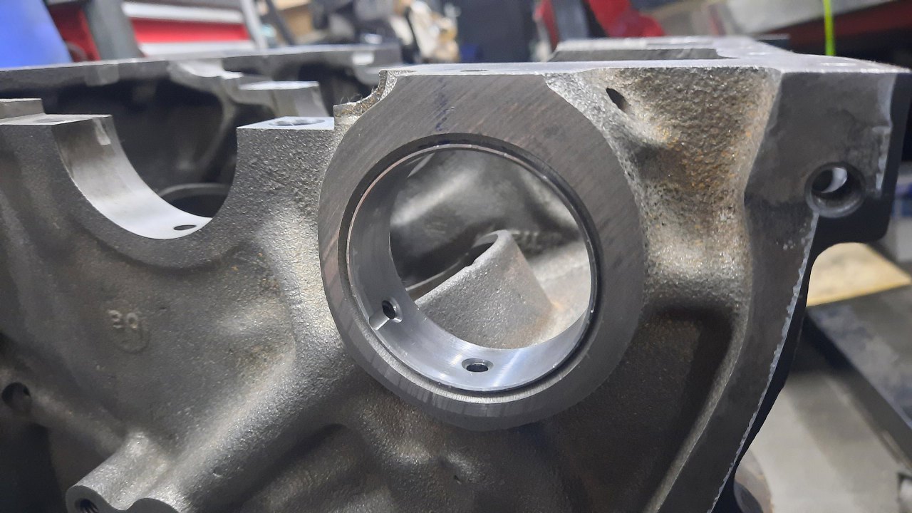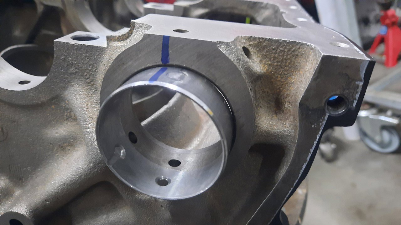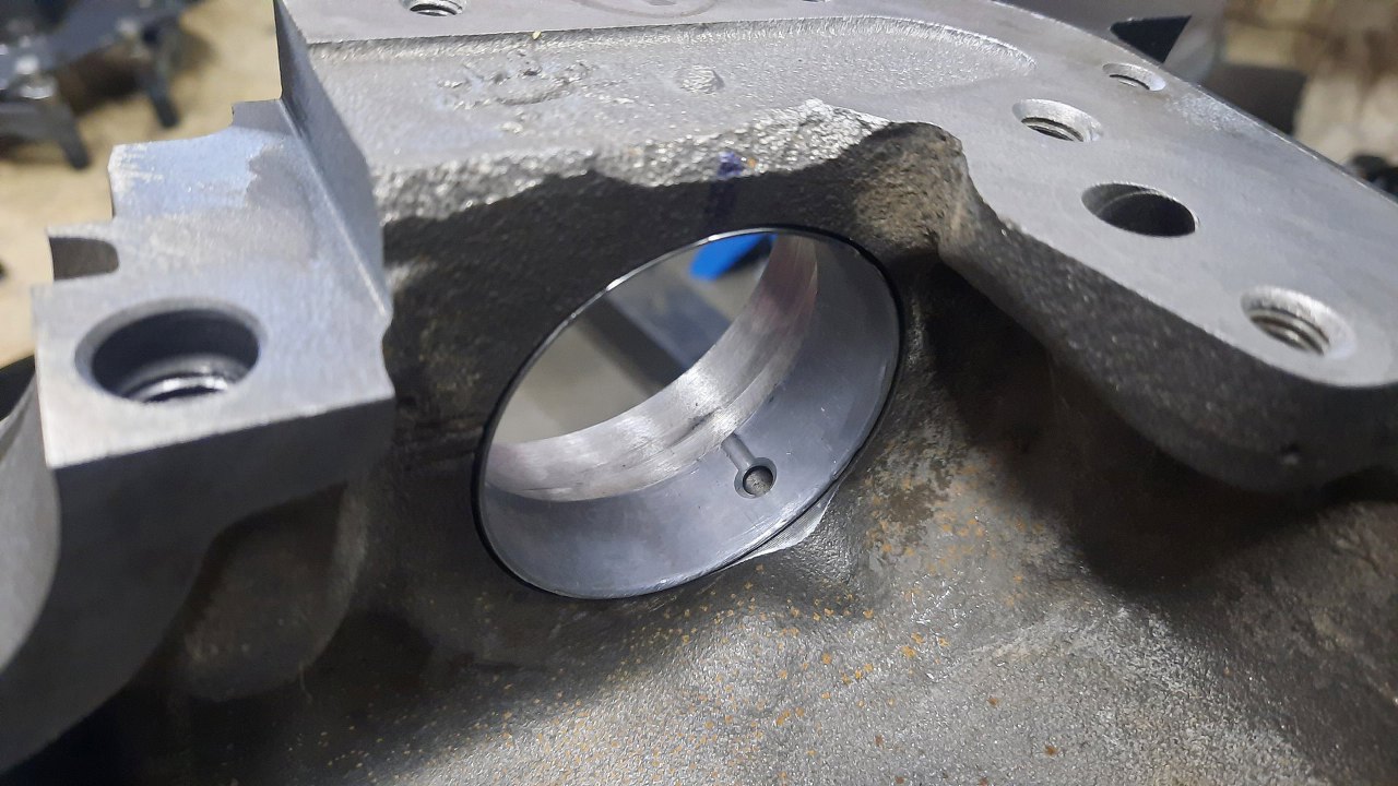 A tu już panewki na miejscu. Tylna, z rowkiem w stronę tyłu bloku.
