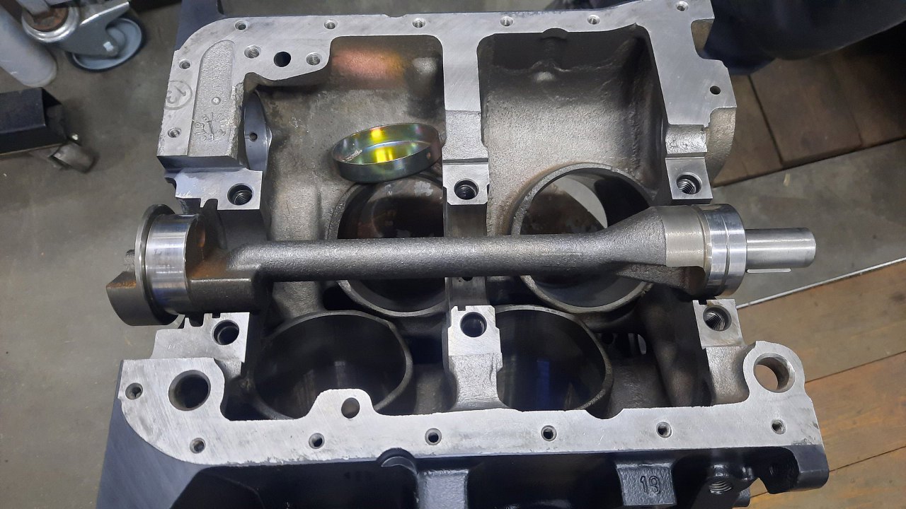 Panewki wałków najłatwiej włożyć jak blok leży luzem. Zanim wrzucę go z powrotem na stojak, włożę jeszcze do niego wałek wyrównoważający. Znalazłem też nieskrzywioną, a nawet i ocynkowaną, zaślepkę.