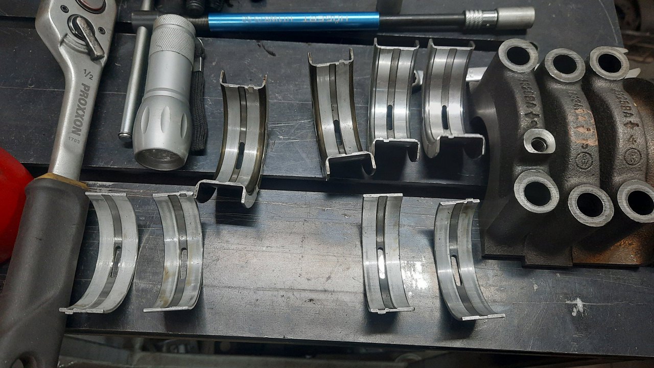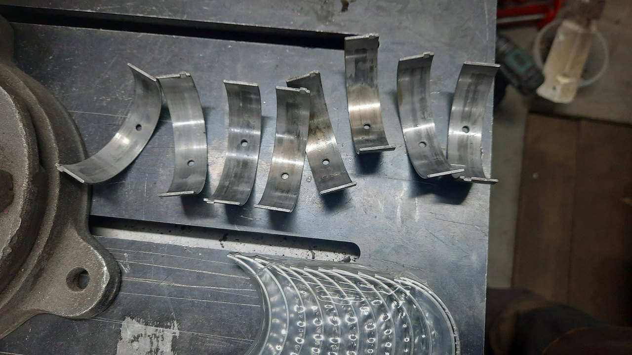 Panewki korbowe też były nowe, ale przez problemy z ciśnieniem oleju, dostały w kość (czy panewka ma kość?). Wymienię je na nowe.
