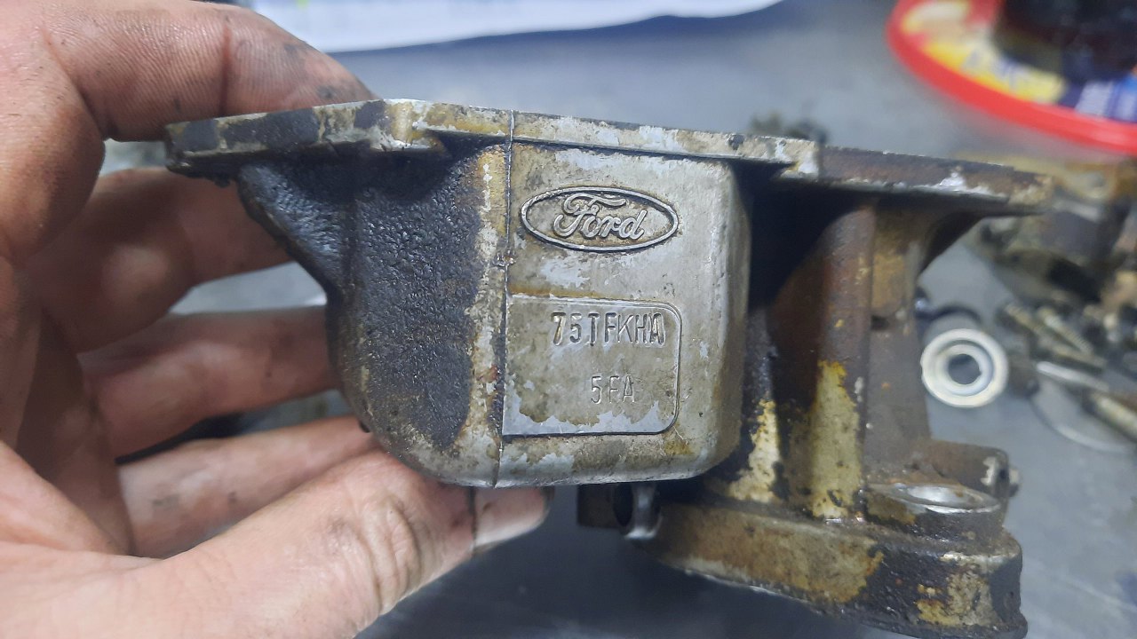 Z tej strony korpusu było mniej brudu i widać fabryczny fordowski numer części.