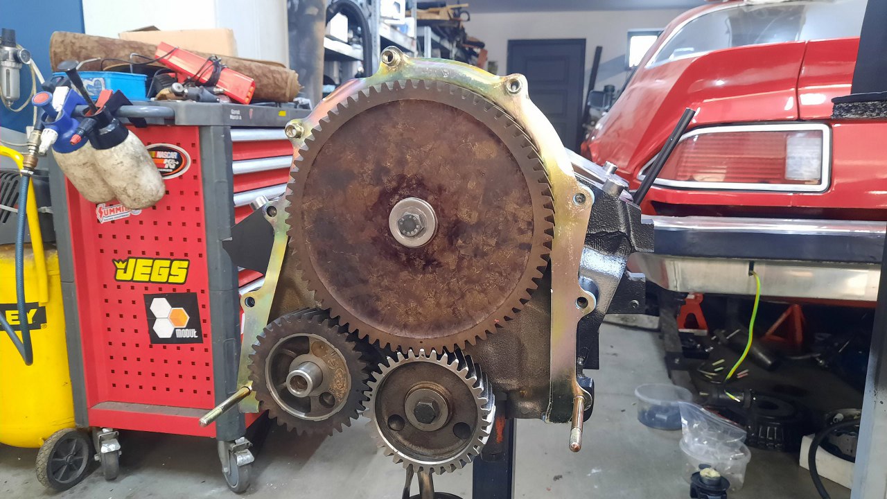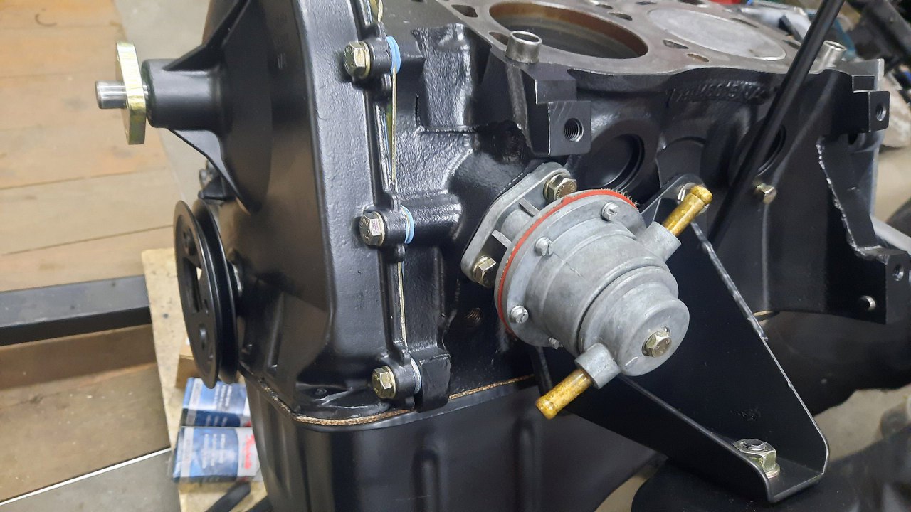 Ale jeszcze z tej strony jest pompa paliwa. Poniżej niej powinien być czujnik ciśnienia oleju, ale na razie go nie przykręcam. Po przykręceniu głowic wkręcimy tu manometr i sprawdzimy jakie ciśnienie oleju daje pompa kręcona wiertarką. Tak dla pewności.