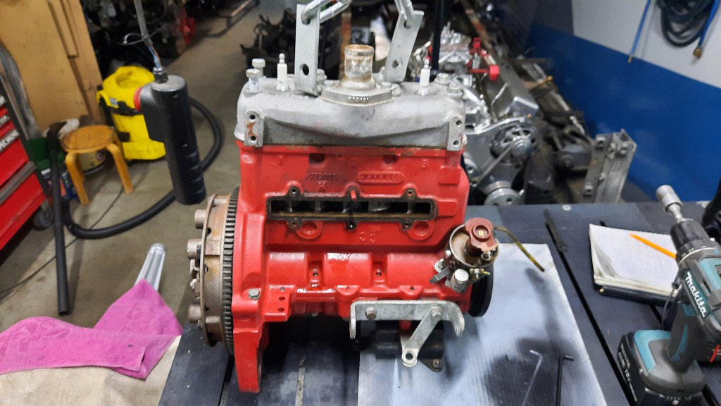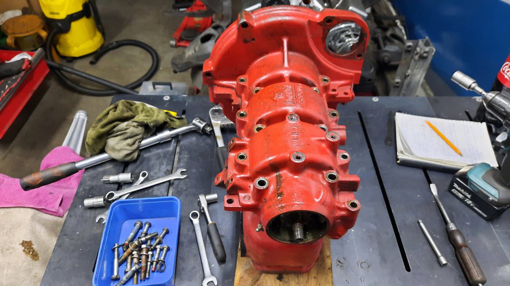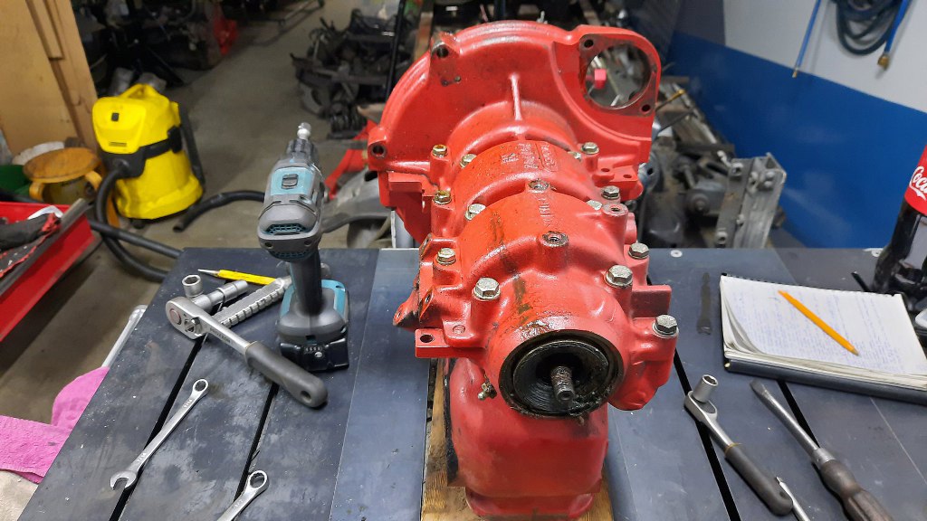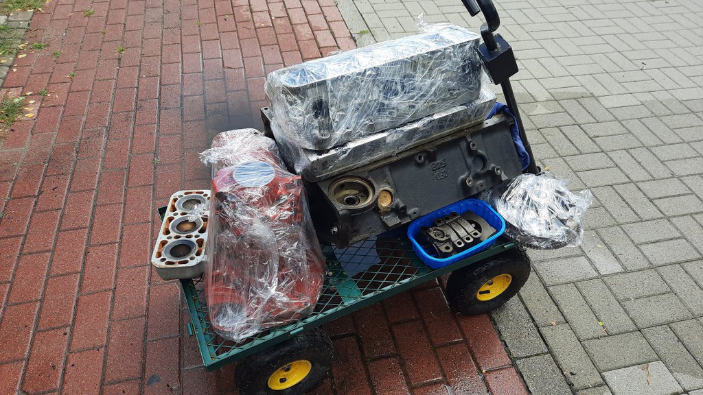 Potem spakowałem części do wywiezienia do szlifierni. Wywiozłem silnik razem z drugim - Small Blockiem Chevroleta. Najlepsze jest to, że cały ten dwusuw ma pojemność niewiele większą niż JEDEN tylko cylinder z tej V8! Dwusuw ma 750cm3, V8 - 5,7l. Ale z mocą jest nieźle - Saab z 750cm3 ma 65KM, a V8 (mimo, że to ten wzmocniony, z Corvette) - na jeden cylinder ma zaledwie 30KM z groszami (245KM w sumie) :).