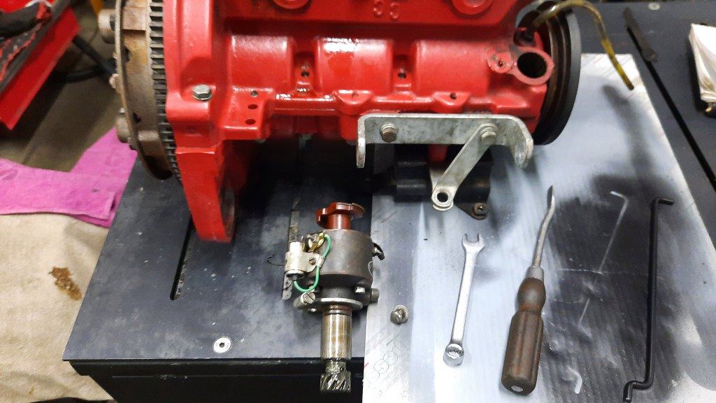 Z przodu bloku zdejmę obudowę kół zębatych napędu aparatu zapłonowego.