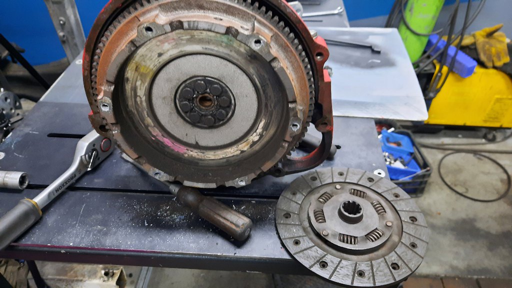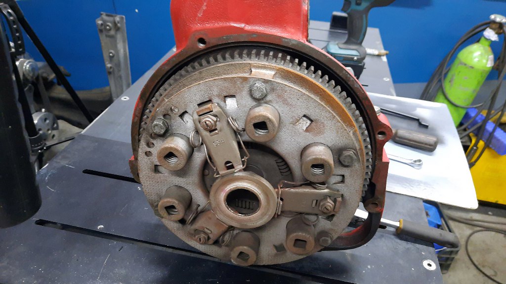 Zajmę się teraz kołem zamachowym i sprzęgłem. Sprzęgło oczywiście jest tu starego typu, ze sprężynami śrubowymi. I wystarcza - silnik nie ma dużego momentu obrotowego.