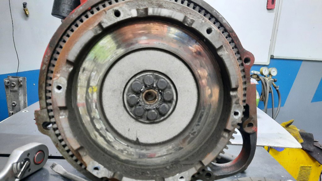 Koło zamachowe też nadaje się do szlifu. Wieniec jest w bardzo dobrym stanie. Ciekawe jest to, że koło zamachowe przykręcone jest do wału korbowego na aż 8 śrub! Co prawda mikrej średnicy, ale zawsze - jest to sporo.