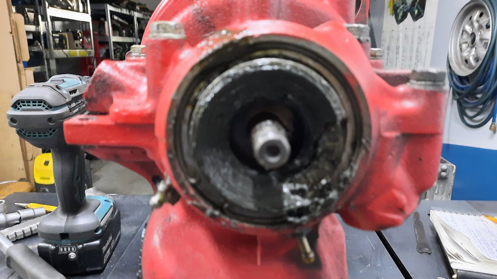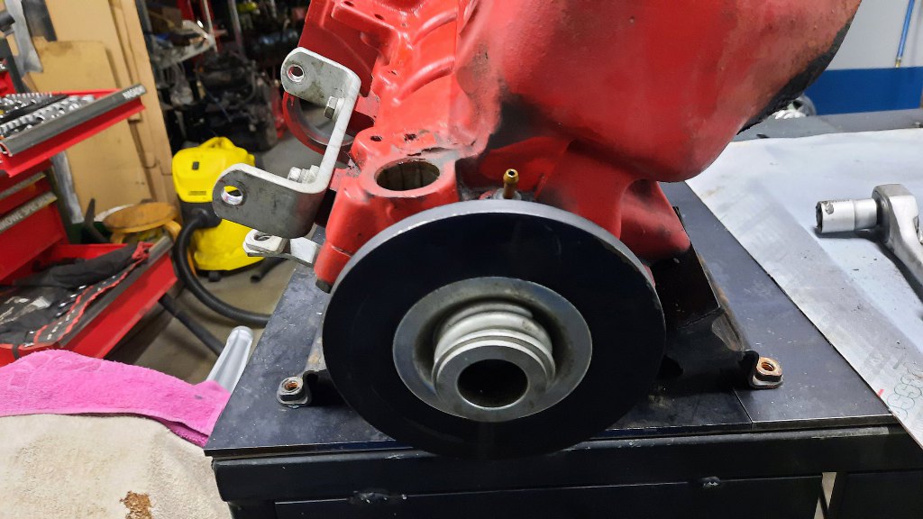 Zdjąłem zębatkę z wału i uszczelniacz. Sam wał korbowy ma tutaj śmiesznie małą średnicę.