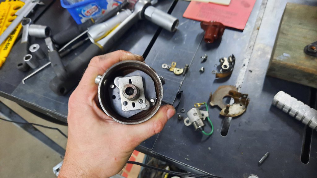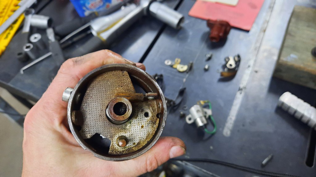 W środku trochę zapyziały. Na pewno był problem z przerywaczem, który już wykręciłem. To zresztą dość rzadki aparat zapłonowy, i przerywacz kosztuje nie 30zł, a ponad 200...