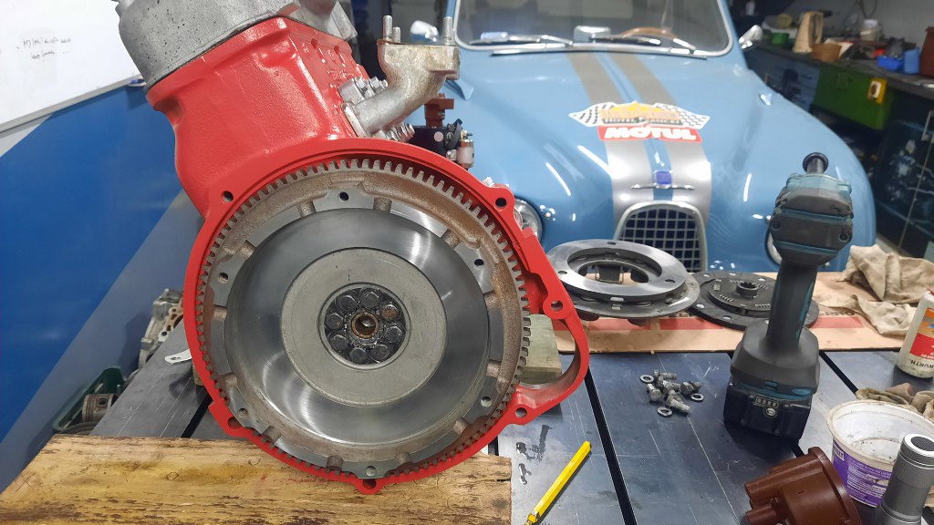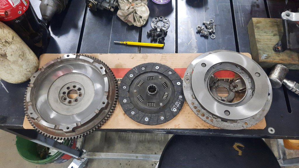 Potem znienacka odebrałem tarczę sprzęgła z nabicia nowej okładziny. Samo koło zamachowe i docisk były splanowane.