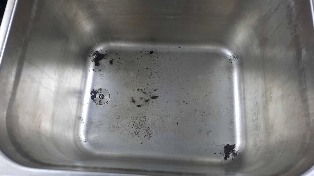 Potem gaźnik umyłem w myjce ultradźwiękowej. To są osady pozostałem po jego umyciu. A nie wyglądał tak źle...