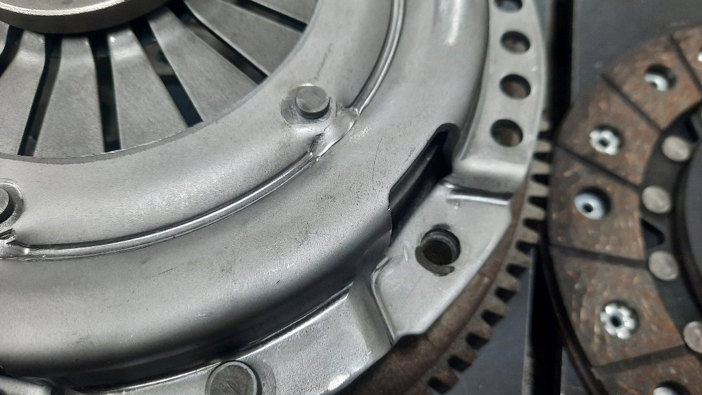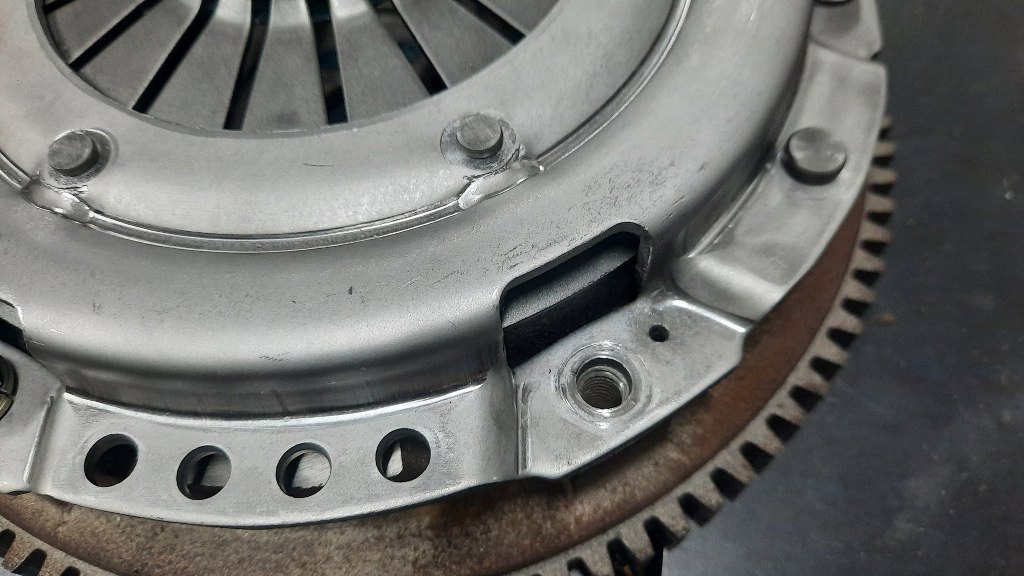W szlifierni od razu wszystko sprawdzili jak trzeba i ustawili docisk centrycznie w stosunku do koła zamachowego - nie jest on bowiem ustawiany na śrubach. Jedna śruba nawet nie pasuje i trzeba nieco powiększyć otwór w docisku.