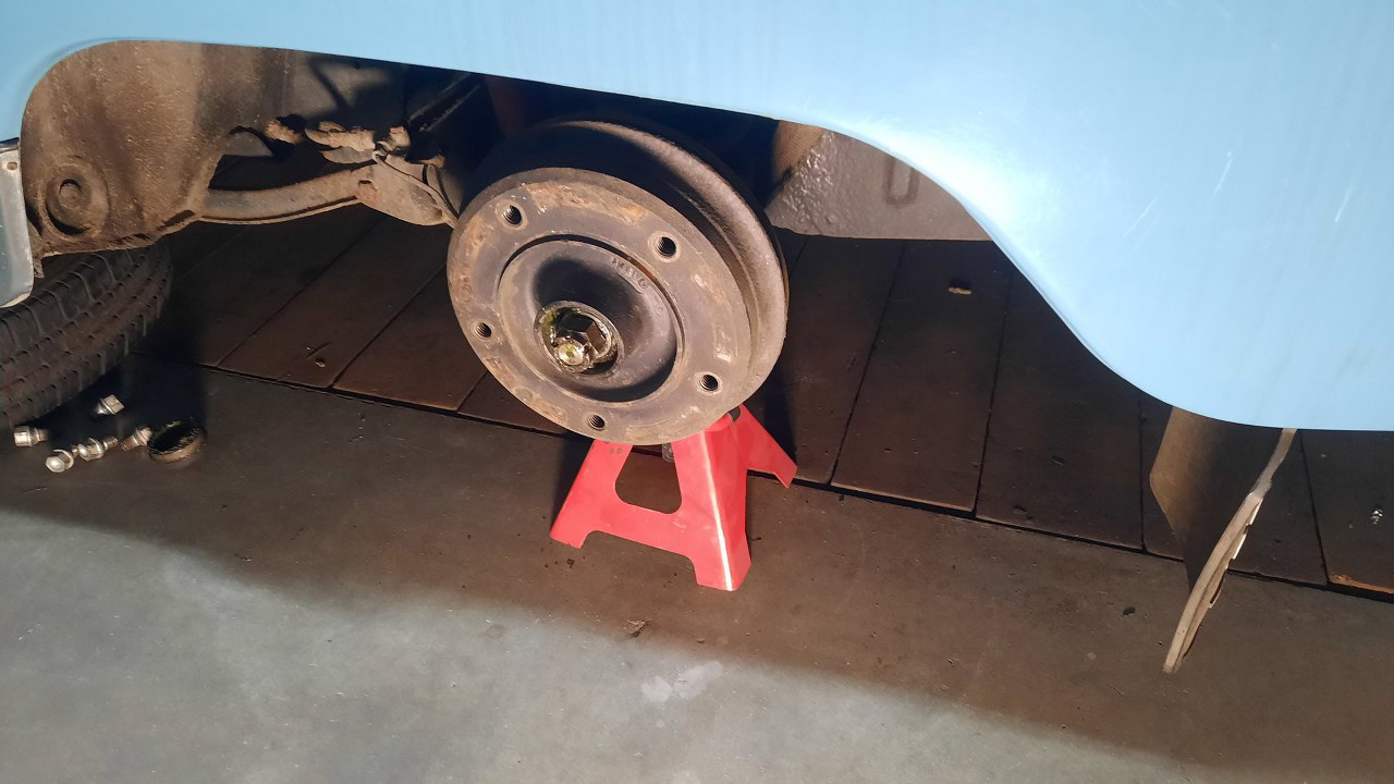 Zaczynam od postawienia samochodu na kobyłkach i zdjęcia kół. Potem zabieram się za tył.