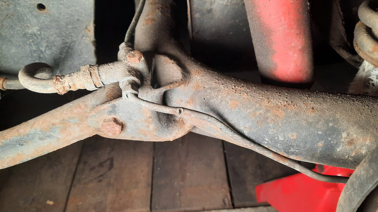I strona lewa - zwróć uwagę na ułożenie okładzin. Z tej strony też dorobiłem nową rurkę hamulcową zamiast tej przetartej.