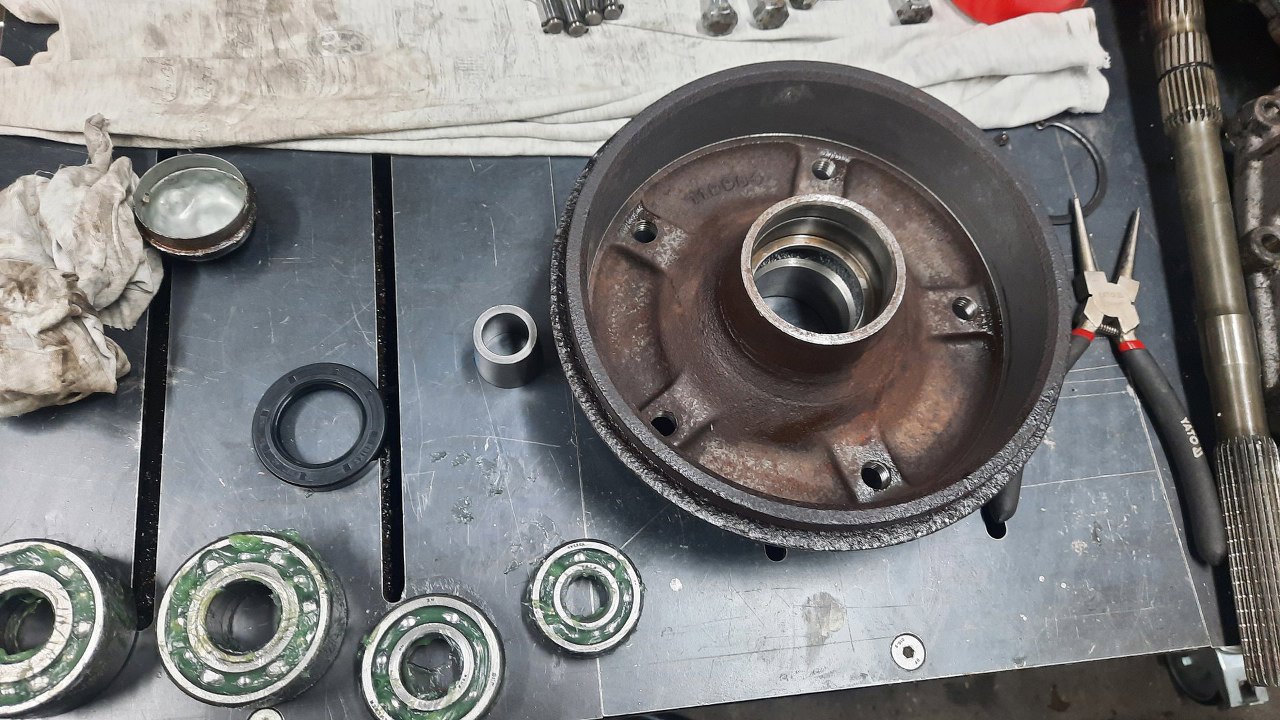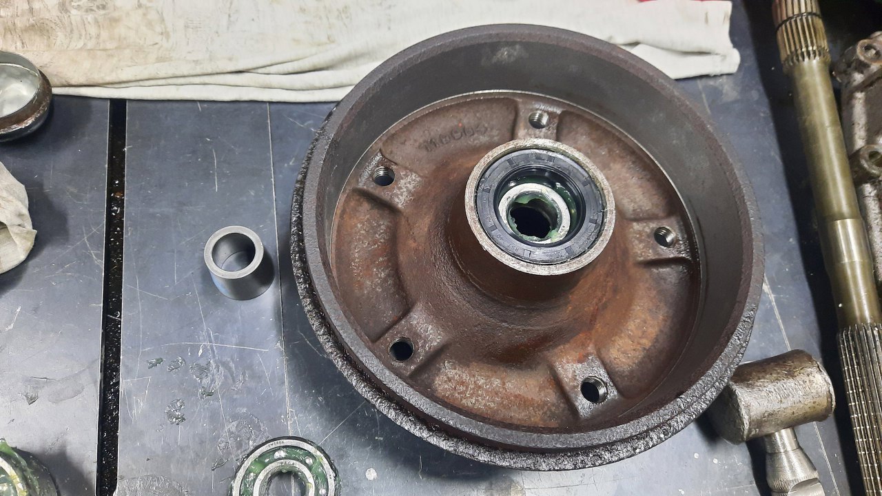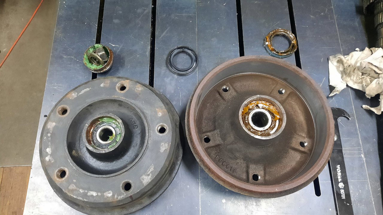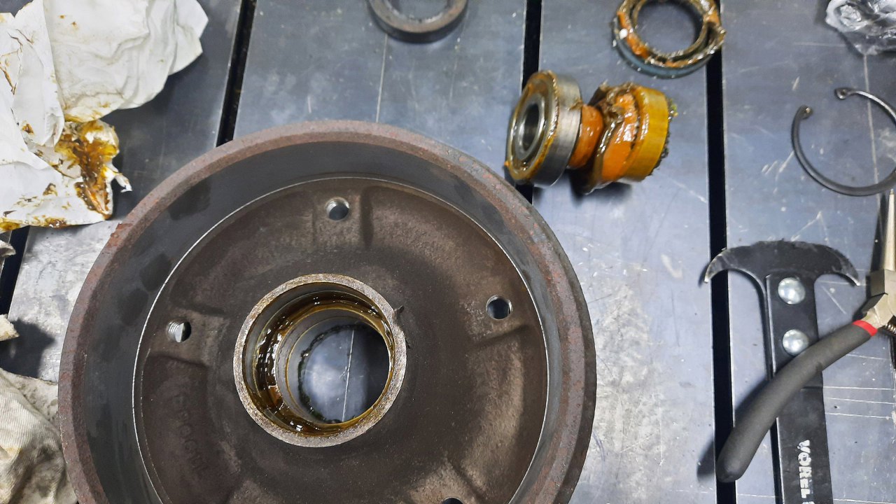 Po prawej jest bęben, z którego już wyjąłem uszczelniacz. Smar rzeczywiście po terminie przydatności do użycia. Następna ciekawostka jest natomiast po lewej - łożyska w tym bębnie zostały kiedyś wymienione na takie z uszczelnieniami. Ale mimo to ktoś napakował smaru w kapselek :).