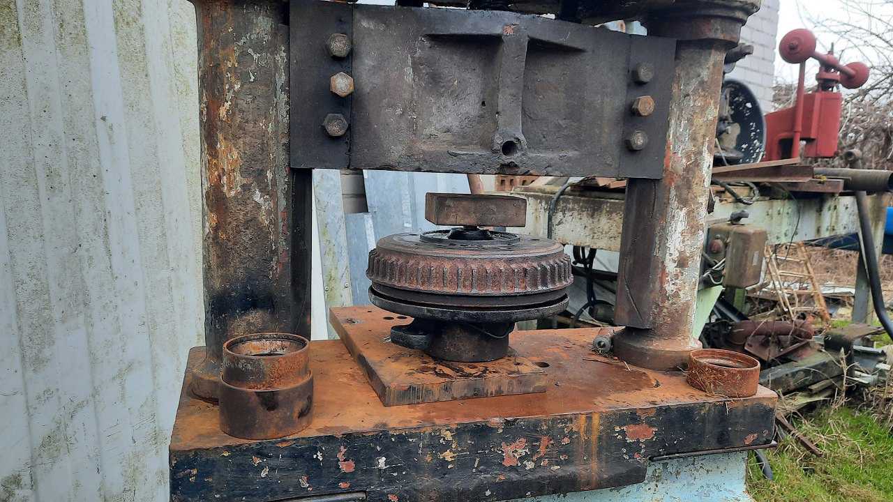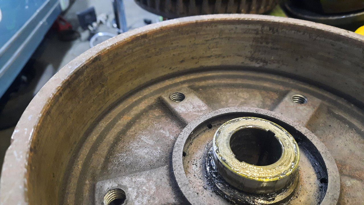 Po wymyśleniu podparcia dla całości zaczęliśmy cisnąć. W końcu trzasnęło i bęben się odkleił. Ale trzasnęło tak, że myślałem, że będę go zbierał w kawałkach. Musiał być naprawdę mocno zapieczony.