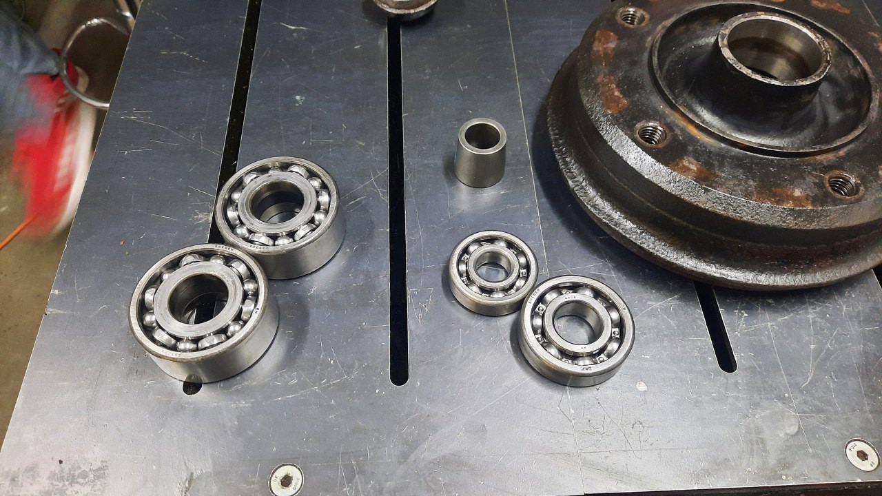 Najpierw wyciągnąłem półośki z łożysk. Wysypały się sprężynki spomiędzy półosi i łożysk.