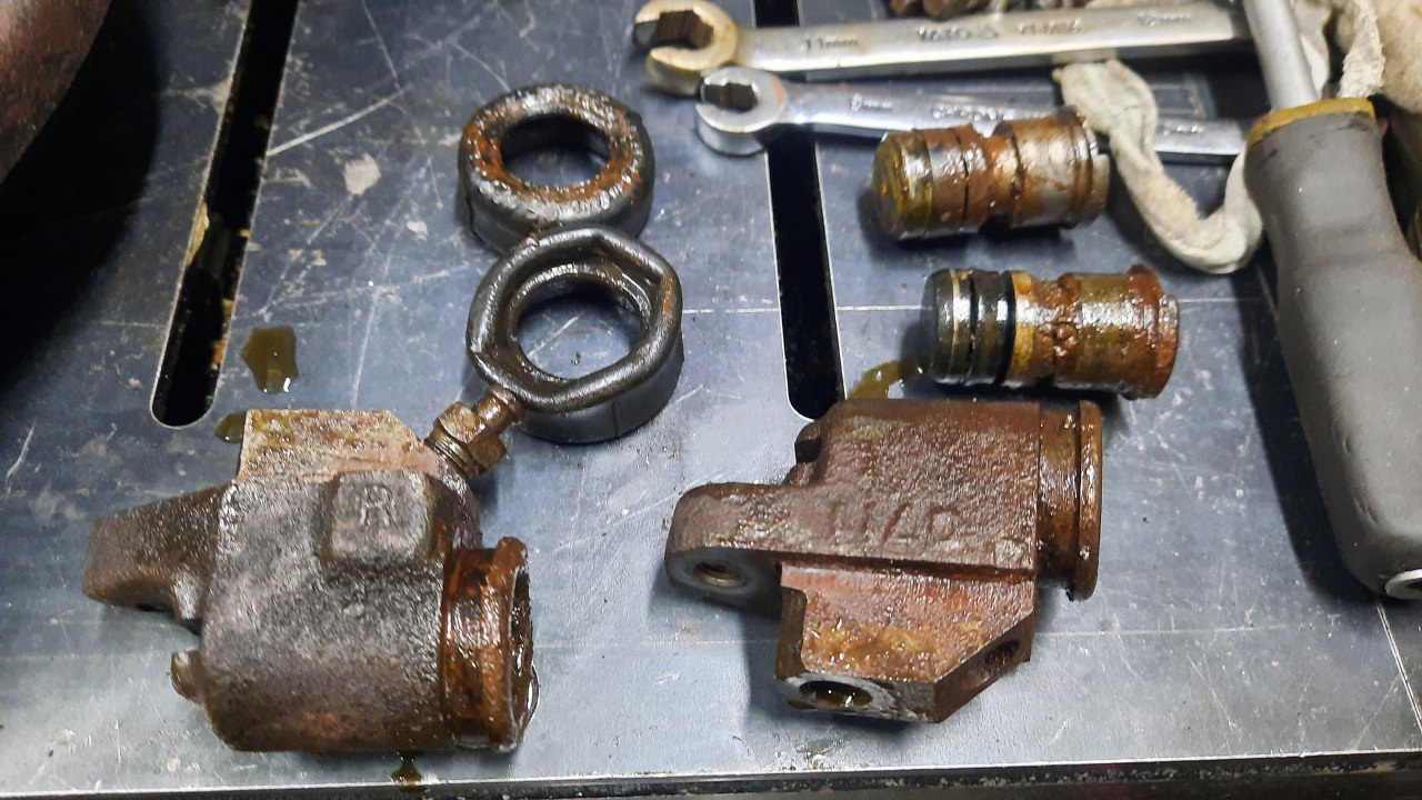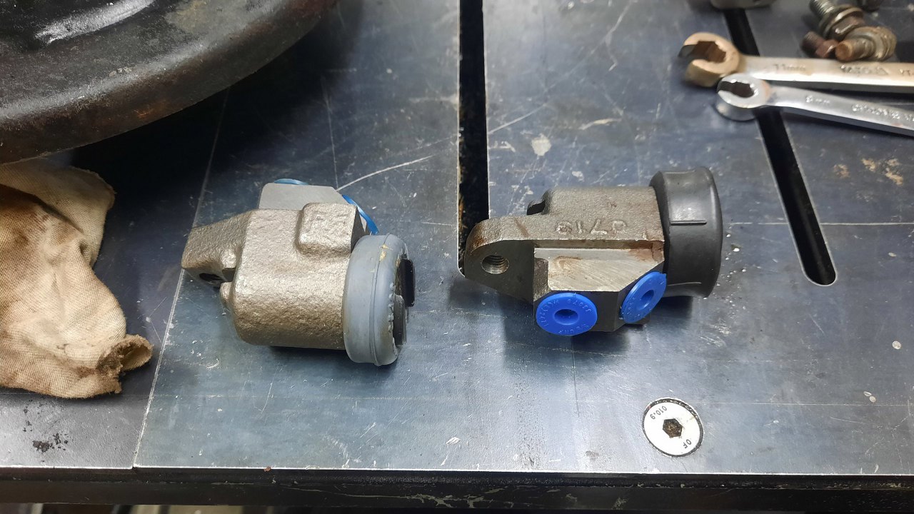 Hubert przywiózł mi swoje zapasy części. Z czterech potrzebnych cylinderków znalazłem tam dwa. Kolejne dwa miały inny tłoczek, ale właściwą obudowę. Wziąłem zatem obudowy pożeniłem ze starymi, wyczyszczonymi cylinderkami.
