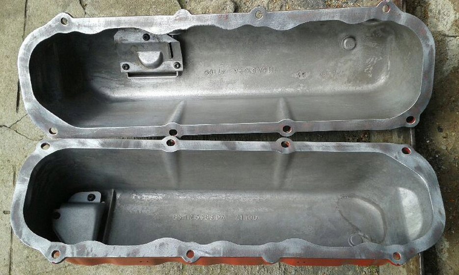 A tak wyglądają prawidłowo przygotowane do założenia pokrywy - wypiaskowane do czysta z odkręconymi blaszkami, niepomalowane, a blaszki przykręcone dopiero przed założeniem pokryw na silnik.