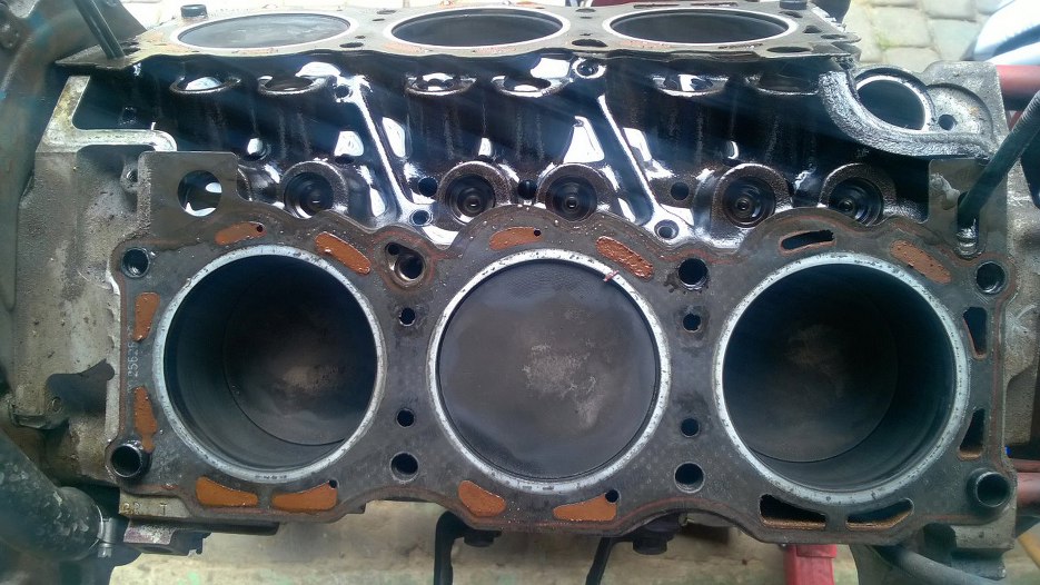 Trafił do mnie kolejny silnik V6 Forda. Tym razem jest to silnik chyba z Granady, włożony do Taunusa, z założoną całą górą, czyli kolektorem dolotowym i całym zestawem elektronicznego wtrysku paliwa, od Scorpio :) To tak, żeby było ciekawiej. Silnik przeszedł kilka lat temu remont o nieznanym zakresie, potem zmienił właściciela na obecnego, a niedługo po włożeniu do samochodu (z jakieś 3000km) zaczął wykazywać objawy migania kontrolką oleju, co nigdy nie jest mile widziane.