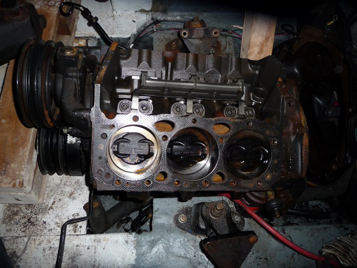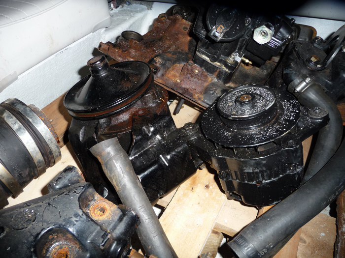 Jak już łódź była w Polsce, to się umówiliśmy na wstępne oględziny. Okazało się, że jest to Chevroletowe V6 o pojemności 4.3 litra. Rocznik jeszcze ustalimy, wstępnie dostałem informację, że okolice końca '80, co zresztą się potwierdza w cechach charakterystycznych silnika - np. popychacze zaworów były rolkowe od '87 roku, ale nie ma wałków wyrównoważających - one weszły do produkcji ok. '94 roku.