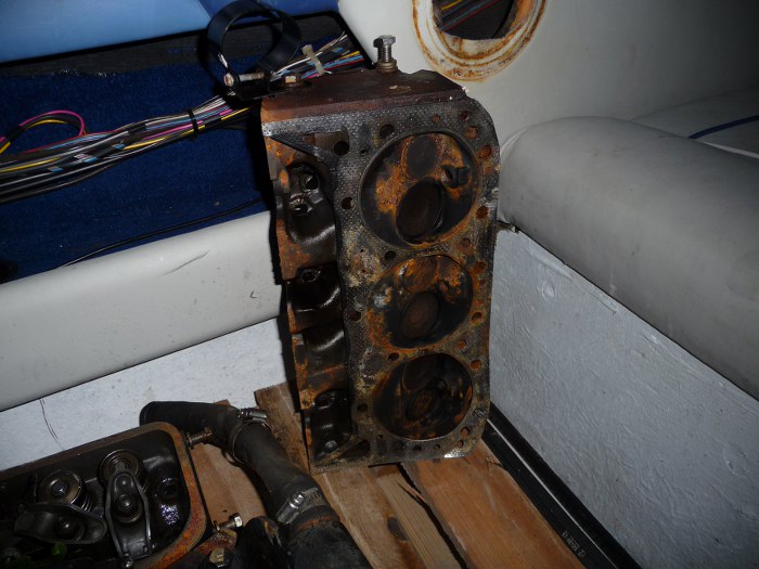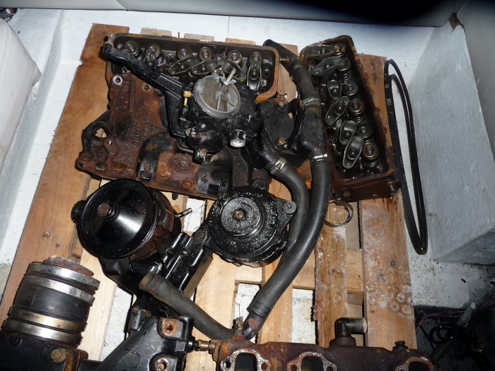 Silnik leżał w łodzi rzucony jak popadnie, rozkręcony, niektóre przewody elektryczne pocięte... Rzucony zresztą na blachę osłaniającą koło zamachowe, która się pogięła.