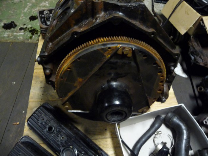 Na całe szczęście mam w garażu wyciągarkę, bo trochę toto ustrojstwo waży :) Na zdjęciu wszystko co do tego silnika się udało znaleźć.