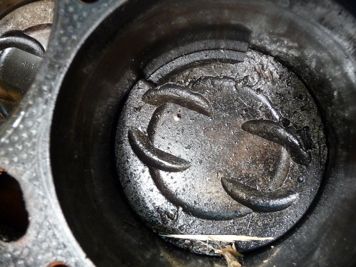 A to powód rozebrania silnika - coś wpadło do cylindra i nieco szkód narobiło. Była mowa, że silnik był po remoncie, ale gładzie cylindrów na to nie wyglądają - nie widać śladów honowania i mają progi ze zużycia. Wszystko będzie jasne jak się je pomierzy.