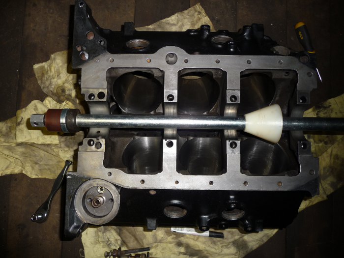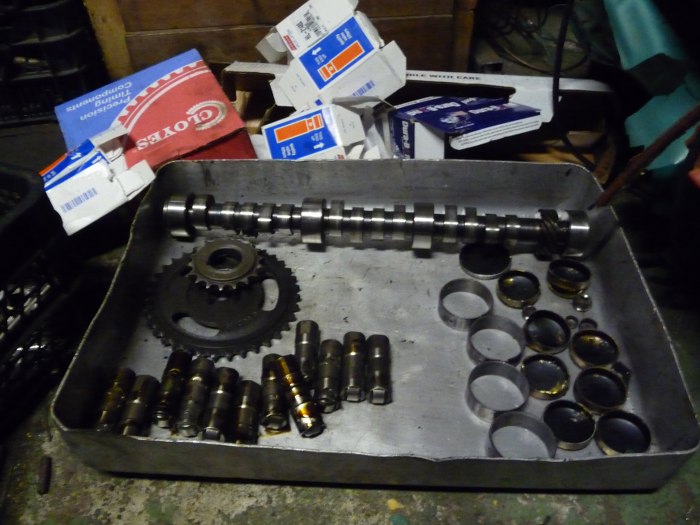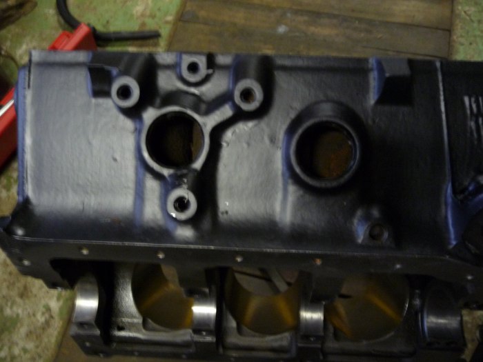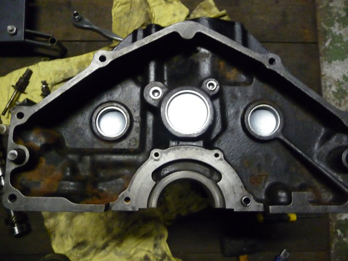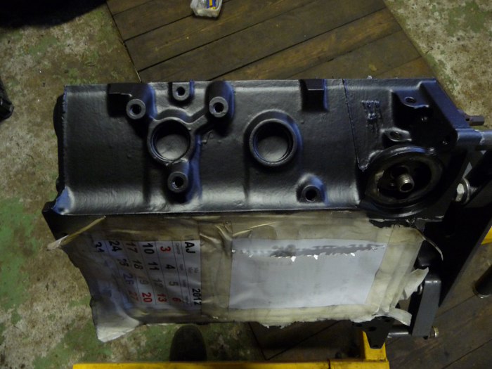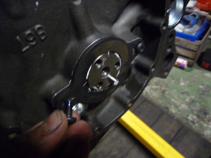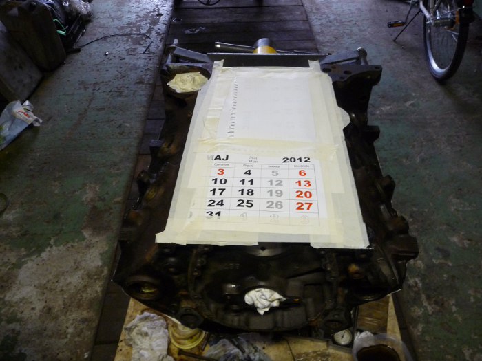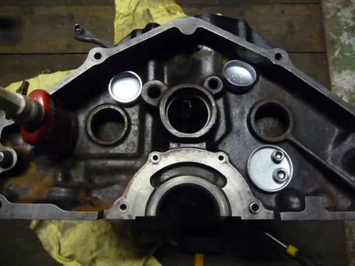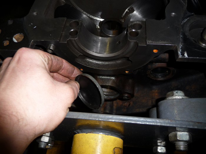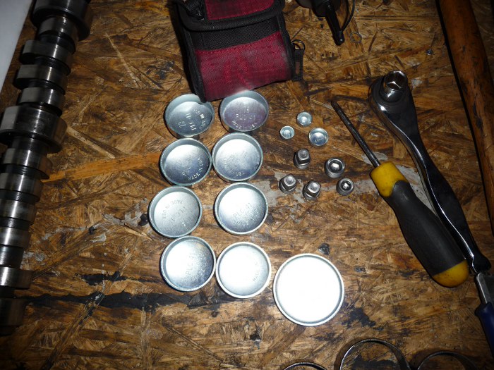 Jak już wysechł, to można się wziąć za pracę właściwą. Jeszcze przed umyciem trzeba się pozbyć wszystkiego, co jest możliwe do pozbycia się w silniku. Na przykład zaślepki wałka rozrządu z tyłu silnika...