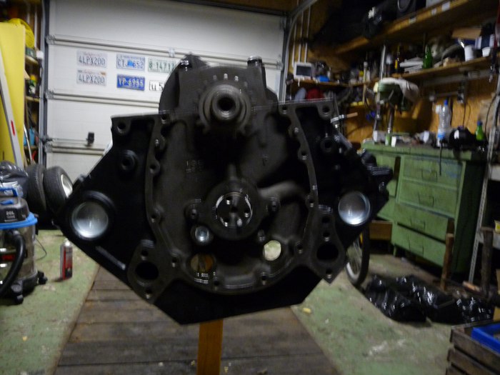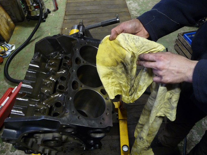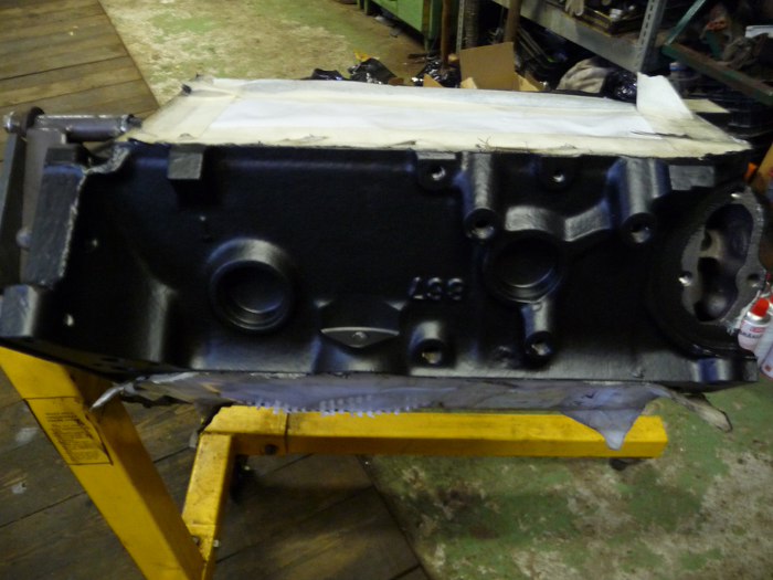 Na początku zazwyczaj czyszczę i maluję silnik. W tan sposób wykorzystuję to, że jest wstępnie umyty w szlifierni... Poza tym nie chcę ryzykować ubrudzenia pyłem i syfem z czyszczenia bloku świeżo poskładanego silnika.