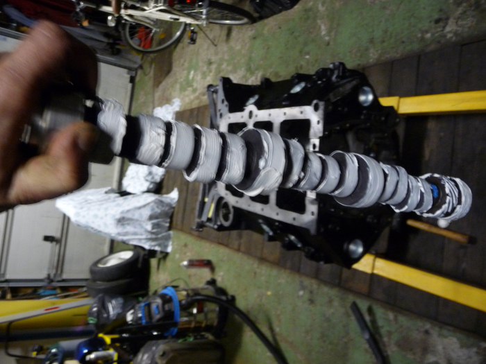 Pora na wałek rozrządu. Zanim go włożyłem upewniłem się, że ma krzywki identycznie jak poprzedni. Coś mi się obijało o uszy, że kiedyś silniki Chevroleta do łodzi kręciły się odwrotnie. Może i to było kiedyś, ale chyba lepiej sprawdzić, niż się potem dziwić? :)