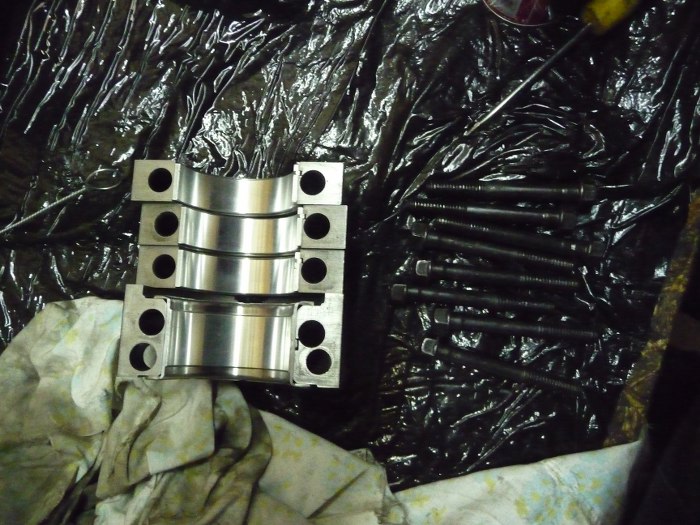 Sprawdzone wymiary plastigage'm. Jak już wiem, że jest ok, to mogę przygotować stopki wału, drugie połówki panewek i śruby.