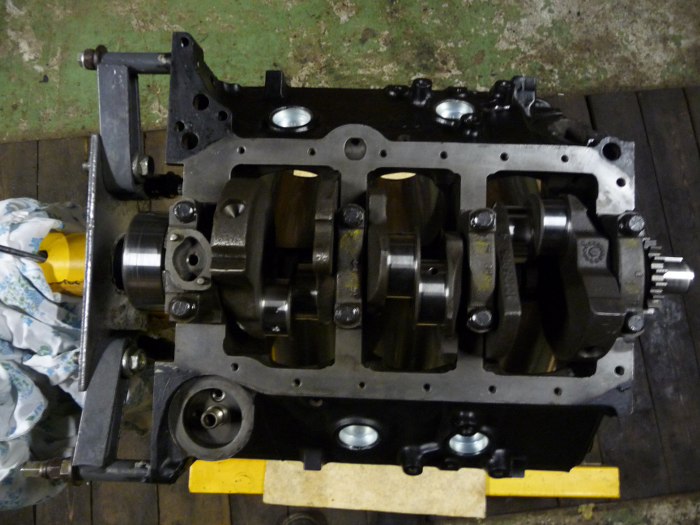 Po włożeniu nowych panewek można się zająć tyłem silnika - przednią panewkę wbija się od tyłu, żeby ją odpowiednio nakierować, więc musiałem zdjąć silnik ze stojaka. Teraz jest dobry dostęp do broków i korków kanałów olejowych.