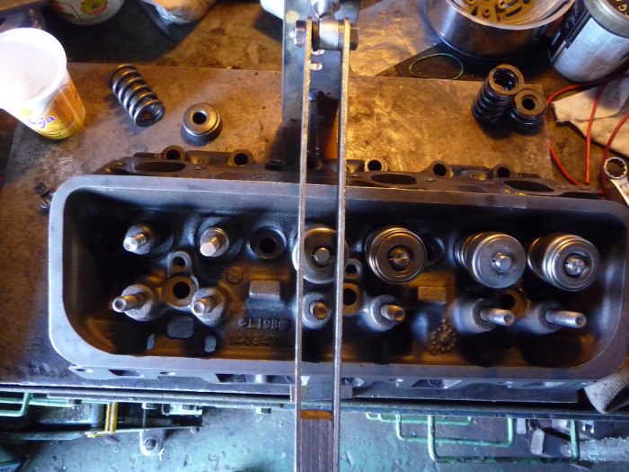 Pierwszą głowicę składaliśmy razem z Dredem, łatwo nie było... Potem jeszcze dwie głowice do V8 złożyliśmy w ten sposób... W końcu się wkurzyłem, pomyślałem i zrobiłem przyrząd do ściskania sprężyn zaworowych, który pasuje do każdej głowicy. Drugą głowicę składałem sam w 5 minut i szło jak po maśle.