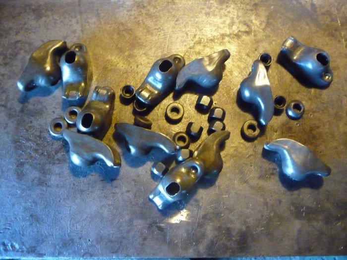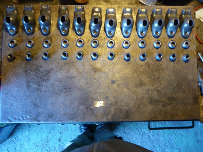 Potem wysypałem drobnicę dźwigienek zaworowych. Przez chwilę brakowało jednej podkładki, ale na szczęście okazało się, że to ja ją zgubiłem wśród uszczelniaczy zaworowych, a nie, że w ogóle jej nie ma. Najgorsze w składaniu tego silnika jest to, że na każdą brakującą część się dość długo czeka...