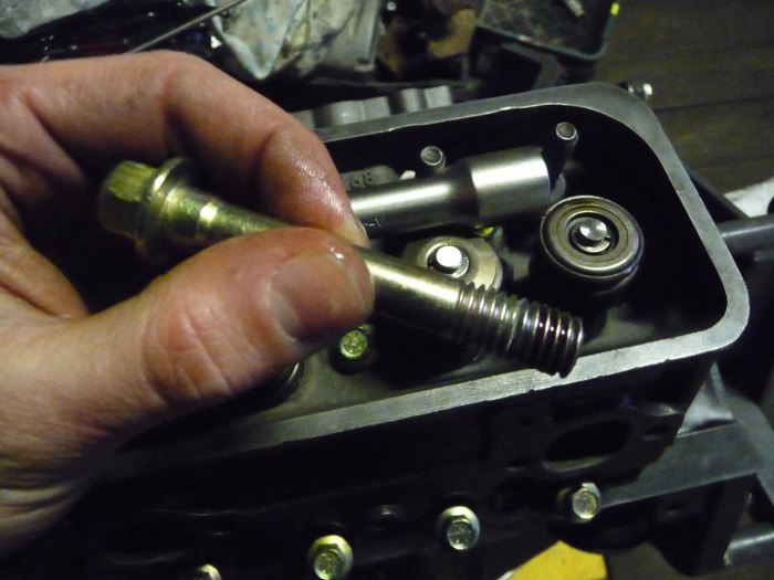 Poskładane, śruby dźwigienek lekko przykręcone. Regulacja dźwigienek będzie potem.