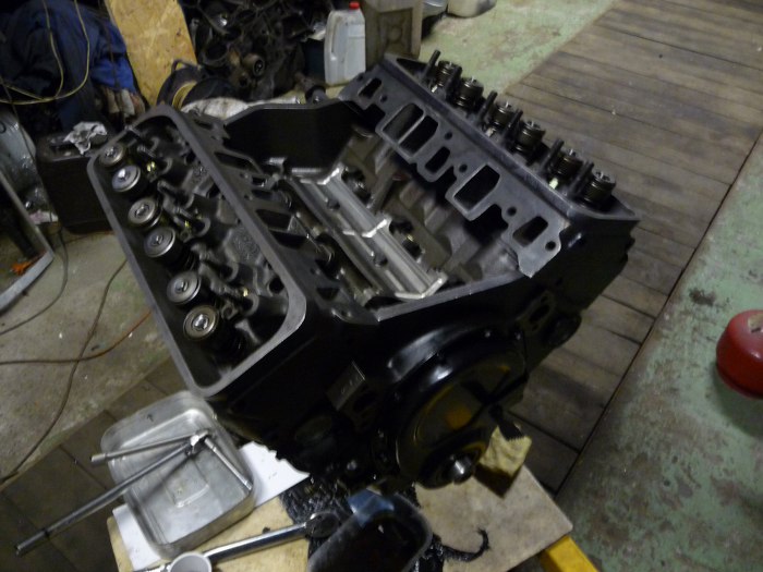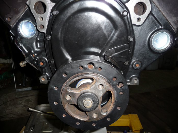 Zacząłem czyścić kolektor dolotowy wewnątrz (trochę piachu z piaskowania się dostało), ale kończył mi się czas i założyłem za to tłumik drgań skrętnych (o w mordę, jak to dziwnie brzmi... harmonic balancer w każdym razie). Oczywiście posmarowany smarem montażowym, żeby simmering wytrzymał kilka chwil, zanim olej do niego dotrze. A jak już miałem to przykręcone, to wreszcie była okazja, żeby przekręcić wał korbowy i sprawdzić, czy wszystko jest ok. Jest ok :) Nic nie szoruje, nie zahacza, chodzi sztywno, jak to na nowych częściach, ale płynnie. Zrobiłem tylko dwa obroty, bo jeszcze oleju nie ma i wszystko jest tylko tyle nasmarowane, co podczas montażu. Dalsze kręcenie po zalaniu silnika olejem.