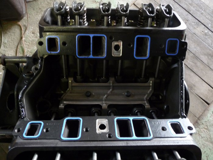 Uszczelki na miejscu, teraz gdzie ja położyłem te śruby? Aby szybko, żeby silikon nie związał :) Zawsze mnie dziwiło, czemy amerykanie nie widzą potrzeby zastąpienia metody "nawal od groma silikony z przodu i z tyłu kolektora" czymś bardziej finezyjnym, może jakąś uszczelką? Ale w końcu to działa...