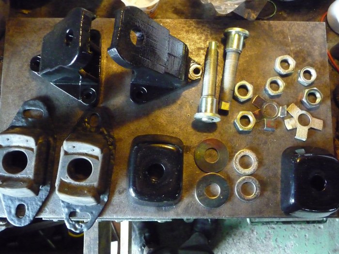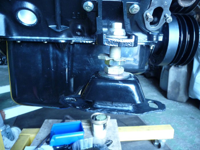 Ponieważ wreszcie pomalowałem (i wyschła farba) poduszki silnika, to mogłem i to zamontować. Powoli szykuję silnik do zdjęcia ze stojaka montażowego i postawienia go na ramę do odpalenia. Łapy silnika wyglądały tak: