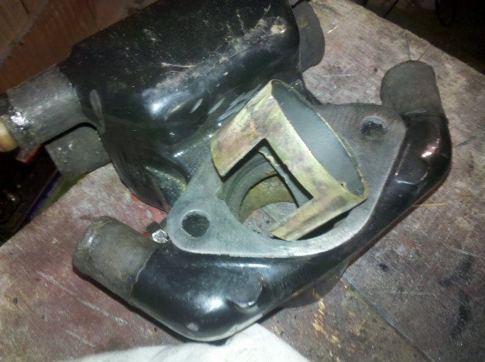 Potem trzeba było założyć kolektory wydechowe. Są one chłodzone wodą, a dodatkowo woda jest mieszana ze spalinami.