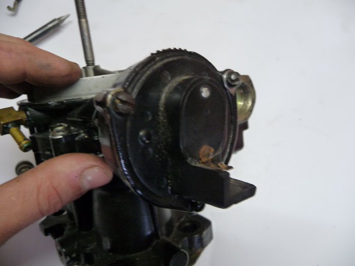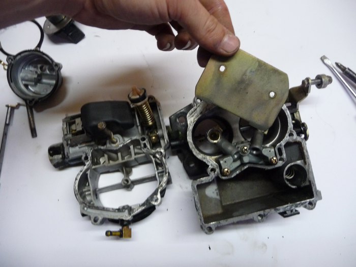 Gaźnik otworzony, teraz trzeba powyjmować resztę części ze środka :)